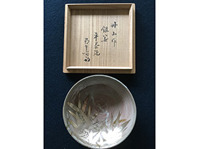 また初代に定評のあった薬鑵に見られる、鋳物特有の「地味な見た目」が、かつての中川浄益作品の主流とされるスタイルでした。ところが10代目の時代に、艶やかなまでの作品を手がけ、一子相伝ながらモデルチェンジを遂げています。その代表といわれるのが、樂家の11・12代目によって作成された盃の内張りに、中川浄益の10代目が金銀を施した「絵高麗写盃」です。これ以外には、純銀製の香炉も定評があります。