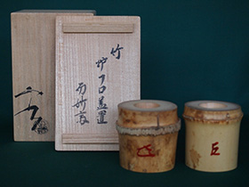 竹細工や柄杓づくりほか、香合・台子・花入といった竹を用いた茶道具も製作