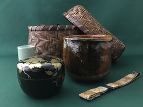 茶碗、香道具、茶掛軸、棚、水屋、釜、炉縁、台子、風炉先、茶壺、結界、立礼セット、懐石セット、電熱風炉釜、茶器、前茶器、棗、菓子盆、水差し、香合、急須