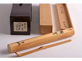 竹細工や柄杓づくりほか、香合・台子・花入といった竹を用いた茶道具も製作
